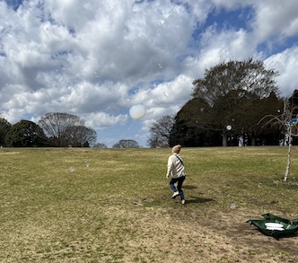 この日は滞在時間のうち半分以上をシャボン玉おじさんの前で過ごすほどの熱中ぶりだった。